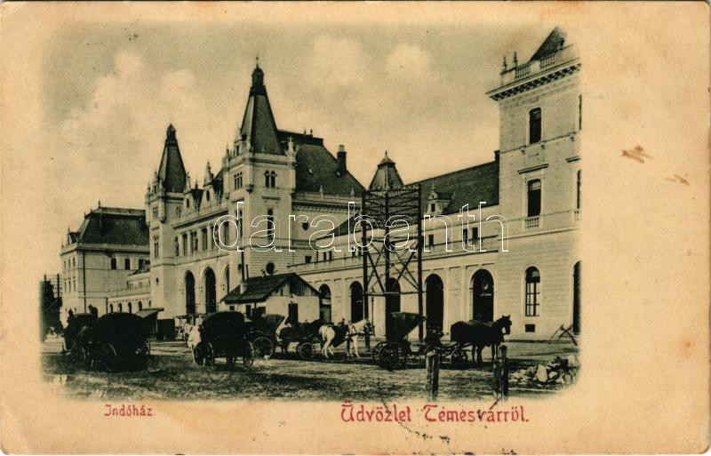 1899 (Vorläufer) Temesvár, Timisoara; indóház, vasútállomás, lovas hin... https://www.darabanth.com/hu/437-Gyorsarveres/437.0/Kepeslapok/Erdely~1500006/1899-Vorlaufer-Temesvar-Timisoara-indohaz-vasutallomas-lovas-hintok-railway-station-~II2837564