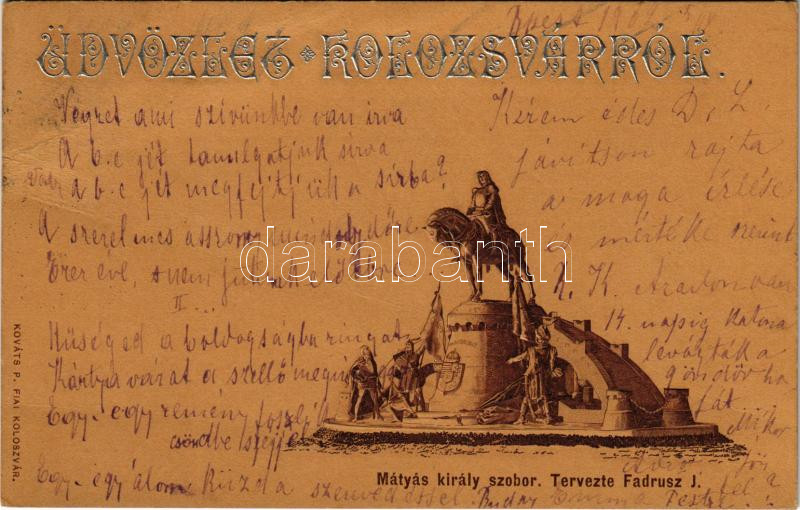 1902 Kolozsvár, Cluj; Mátyás király szobor. Tervezte Fadrusz J., Kovát... https://www.darabanth.com/hu/437-Gyorsarveres/437.0/Kepeslapok/Erdely~1500006/1902-Kolozsvar-Cluj-Matyas-kiraly-szobor-Tervezte-Fadrusz-J-Kovats-P-fiai-kiadasa-domb~II2852188