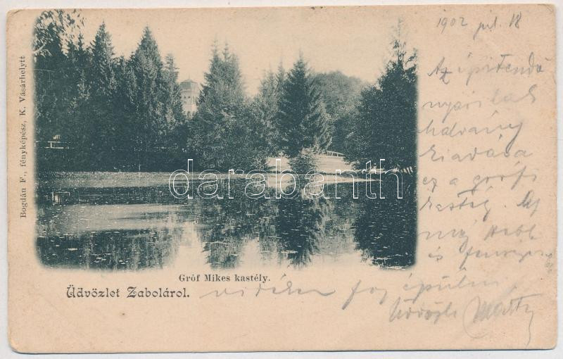 1902 Zabola, Zabala; Gróf Mikes kastély. Bogdán F. fényképész felvétel... https://www.darabanth.com/hu/437-Gyorsarveres/437.0/Kepeslapok/Erdely~1500006/1902-Zabola-Zabala-Grof-Mikes-kastely-Bogdan-F-fenykepesz-felvetele-castle-park-EK~II2784272