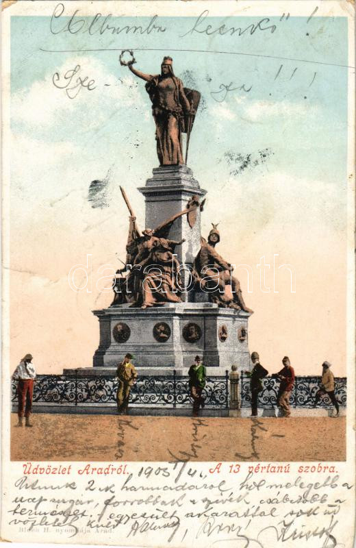 1903 Arad, A 13 vértanú szobor. Bloch H. kiadása / martyrs statue (EK) https://www.darabanth.com/hu/437-Gyorsarveres/437.0/Kepeslapok/Erdely~1500006/1903-Arad-A-13-vertanu-szobor-Bloch-H-kiadasa-martyrs-statue-EK~II2851103