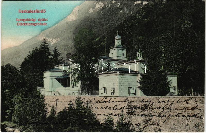 1907 Herkulesfürdő, Baile Herculane; Igazgatósági épület / Direktionsg... https://www.darabanth.com/hu/437-Gyorsarveres/437.0/Kepeslapok/Erdely~1500006/1907-Herkulesfurdo-Baile-Herculane-Igazgatosagi-epulet-Direktionsgebaude-spa-directorat~II2838182