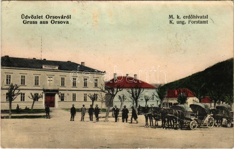 1909 Orsova, M. kir. erdőhivatal / K. ung. Forstamt / forestry office ... https://www.darabanth.com/hu/437-Gyorsarveres/437.0/Kepeslapok/Erdely~1500006/1909-Orsova-M-kir-erdohivatal-K-ung-Forstamt-forestry-office-azott-wet-damage~II2850364