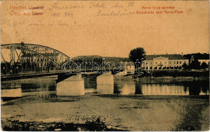1910 Lippa, Lipova; Maros folyó vashídja. W.L. (?) 3041. Zeitler Lajos kiadása / Eisenbrücke über Maros-Fluss / iron bridge over Mures river (szakadás / tear)