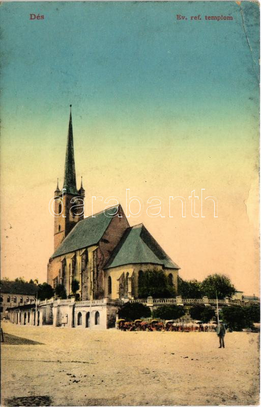 1912 Dés, Dej; Református templom, piac. Gálócsi Samu kiadása / Calvin... https://www.darabanth.com/hu/437-Gyorsarveres/437.0/Kepeslapok/Erdely~1500006/1912-Des-Dej-Reformatus-templom-piac-Galocsi-Samu-kiadasa-Calvinist-church-market-EB~II2847071