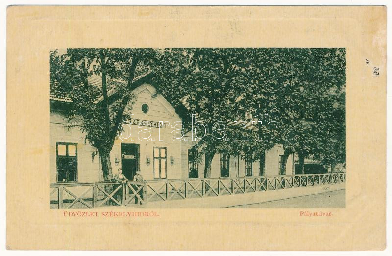 1913 Székelyhíd, Sacueni; pályaudvar, vasútállomás. W.L. Bp. 2267. 191... https://www.darabanth.com/hu/437-Gyorsarveres/437.0/Kepeslapok/Erdely~1500006/1913-Szekelyhid-Sacueni-palyaudvar-vasutallomas-WL-Bp-2267-1911-14-Gottlieb-kiadasa-~II2842823