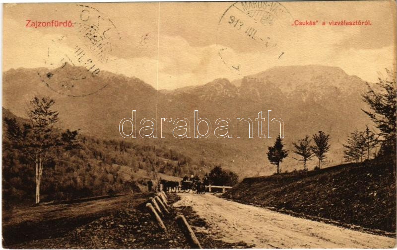 1913 Zajzon, Zizin; Csukás a vízválasztóról / road, mountain (r) https://www.darabanth.com/hu/437-Gyorsarveres/437.0/Kepeslapok/Erdely~1500006/1913-Zajzon-Zizin-Csukas-a-vizvalasztorol-road-mountain-r~II2855003