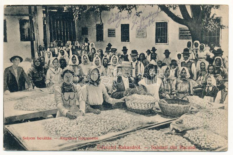 1915 Rakasdia, Rakasd, Racasdia; Selyembeváltás. M. E. Hoffmann kiadás... https://www.darabanth.com/hu/437-Gyorsarveres/437.0/Kepeslapok/Erdely~1500006/1915-Rakasdia-Rakasd-Racasdia-Selyembevaltas-M-E-Hoffmann-kiadasa-Alegatura-Gogoaselor-~II2848046