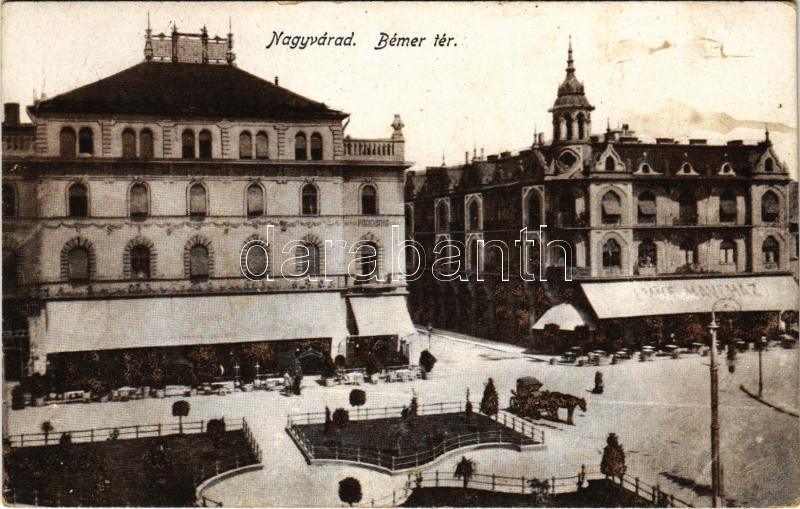 Leírás: 1918 Nagyvárad, Oradea; Bémer tér, Pannonia szálloda, Emke kávéház / square, hotel, cafe (kis szakadás / small tear)
