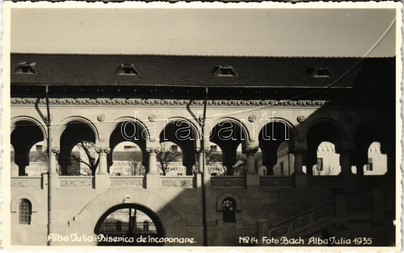 Leírás: 1935 Gyulafehérvár, Alba Iulia; Biserica de incoronare / Koronázási templom / church. Foto Bach photo (EK)