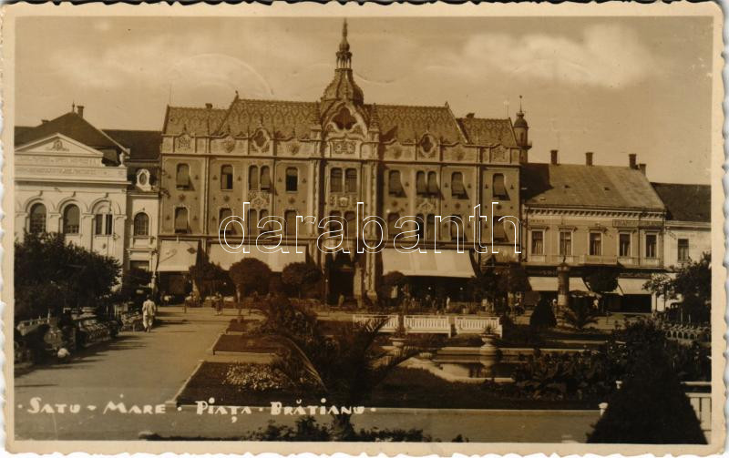 1938 Szatmárnémeti, Szatmár, Satu Mare; Piata Bratianu / tér, üzletek,... https://www.darabanth.com/hu/437-Gyorsarveres/437.0/Kepeslapok/Erdely~1500006/1938-Szatmarnemeti-Szatmar-Satu-Mare-Piata-Bratianu-ter-uzletek-takarekpenztar-squa~II2840029
