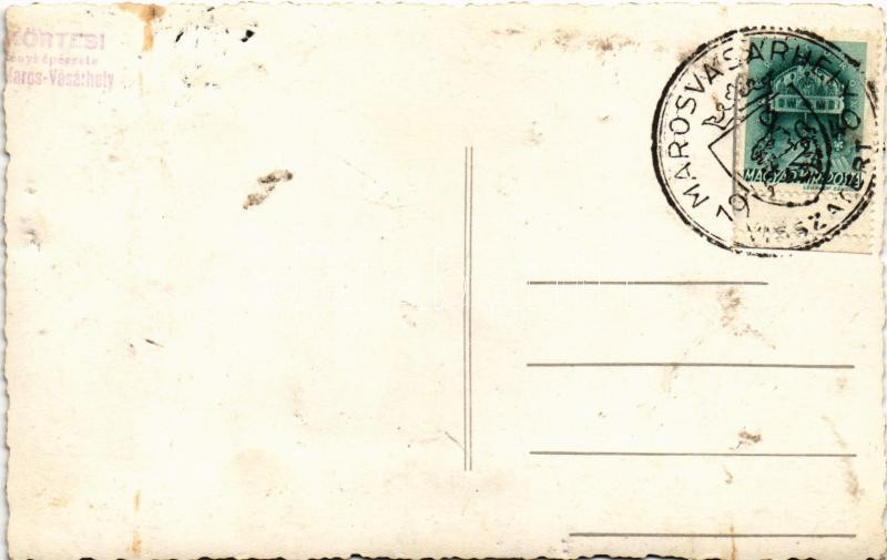 Leírás: 1940 Marosvásárhely, Targu Mures; bevonulás, díszkapu, magyar katonák / entry of the Hungarian troops, soldiers. Körtesi photo + "1940 Marosvásárhely visszatért" So. Stpl. (tűnyomok / pin marks)