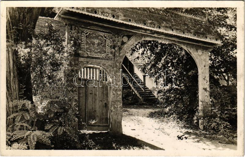 Leírás: 1941 Szejkefürdő, Baile Seiche (Székelyudvarhely, Odorheiu Secuiesc); Székelykapu (Orbán Balázs építette). Kováts István fényképész kiadása / Poarta secuiasca / Transylvanian wood carved gate, folklore (EK)