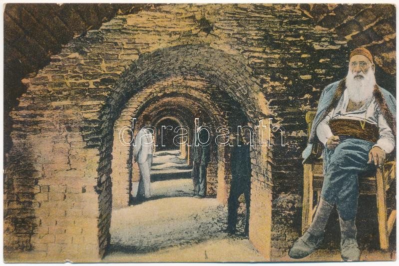 Leírás: Ada Kaleh, sírcsarnok, katakombák, Török férfiak, Bego Mustafa. M.G. / Katakomben / catacombs, Tuskish men