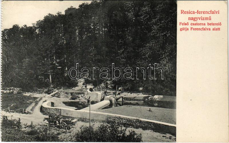 Leírás: Ferencfalva, Franzdorf, Valiug (Resicabánya, Resita); A ferencfalvi nagyvízmű. Felső csatorna beterelő gátja Ferencfalva alatt / flood gate, dam (EK)