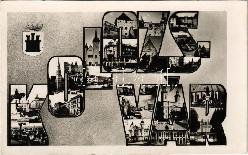 Kolozsvár, Cluj; Betűs montázs címerrel / Montage with letters and coa... https://www.darabanth.com/hu/437-Gyorsarveres/437.0/Kepeslapok/Erdely~1500006/Kolozsvar-Cluj-Betus-montazs-cimerrel-Montage-with-letters-and-coat-of-arms~II2849983