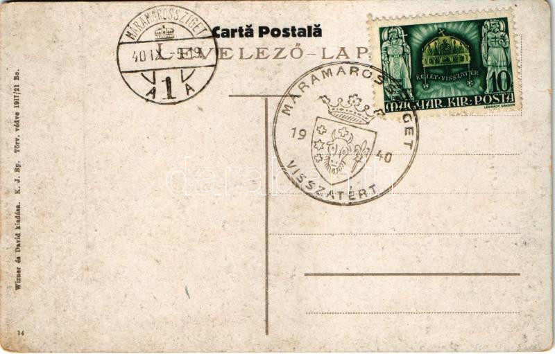 Máramarossziget, Sighetu Marmatiei; Római katolikus templom. Wizner és Dávid kiadása / Biserica rom. cat. / Catholic church + "1940 Máramarossziget visszatért" So. Stpl. (EM)