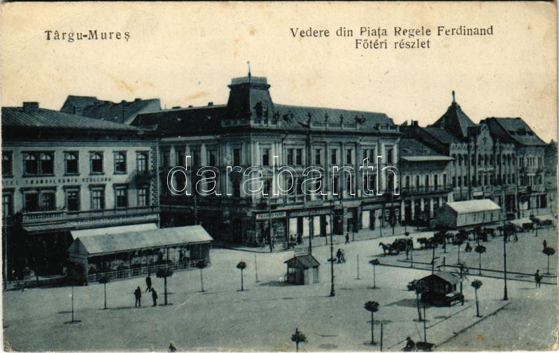 Marosvásárhely, Targu Mures; Vedere din Piata Regele Ferdinand / Fő téri részlet, Transilvania szálloda, üzletek. Révész kiadása / main square, hotel, shops (EK)