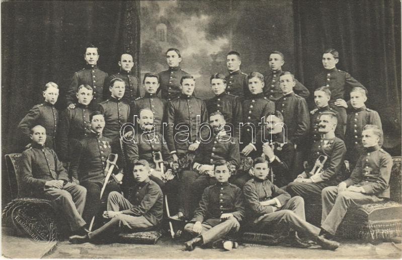 Leírás: Nagyszeben, Hermannstadt, Sibiu; kiskatonák csoportképe. Emil Fischer fényképész / K.u.k. military cadets group picture