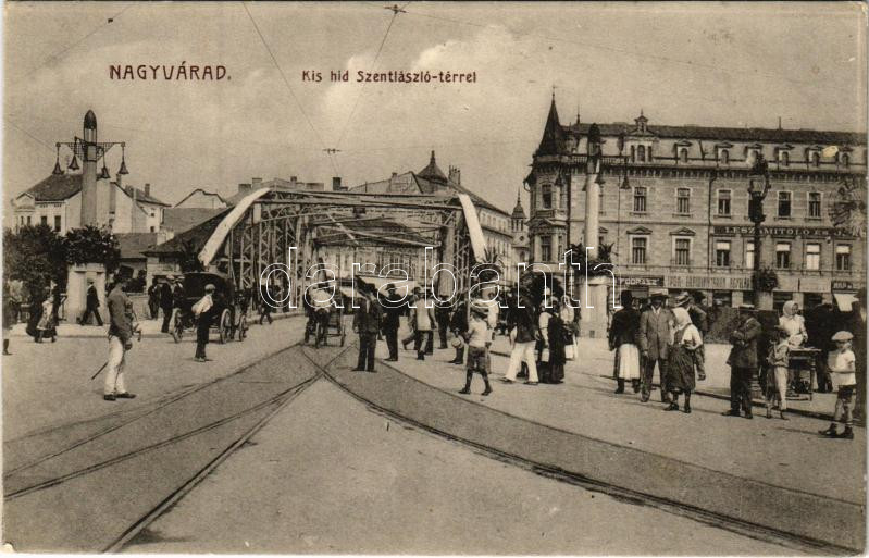 Nagyvárad, Oradea; Kis híd Szent László térrel / bridge, square (EK) https://www.darabanth.com/hu/437-Gyorsarveres/437.0/Kepeslapok/Erdely~1500006/Nagyvarad-Oradea-Kis-hid-Szent-Laszlo-terrel-bridge-square-EK~II2849259