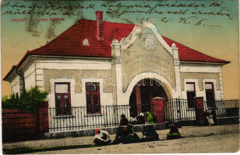 Leírás: Radnót, Radnuten, Iernut; Járási székház, piac / district office, market (Rb)