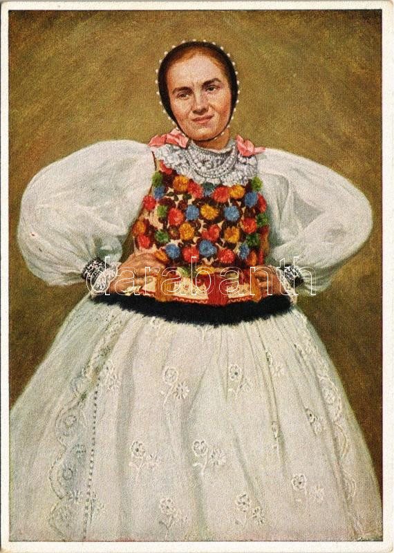 Szászlekence, Lekence, Lechnita, Lechnitz; Siebenbürgisch-Sächsische Volkstrachten. Junge Bäuerin aus Lechnitz im Nösner Gau / Erdélyi szász folklór, népviselet / Transylvanian Saxon folklore s: Hans Retzlaff