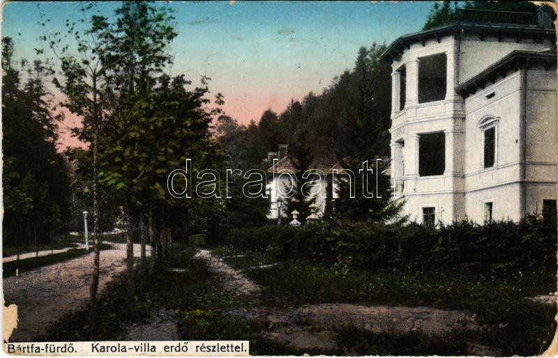1915 Bártfa, Bártfafürdő, Bardejovské Kúpele, Bardiov, Bardejov; Karol... https://www.darabanth.com/hu/437-Gyorsarveres/437.0/Kepeslapok/Felvidek~1500007/1915-Bartfa-Bartfafurdo-Bardejovske-Kupele-Bardiov-Bardejov-Karola-villa-erdo-reszlette~II2842723
