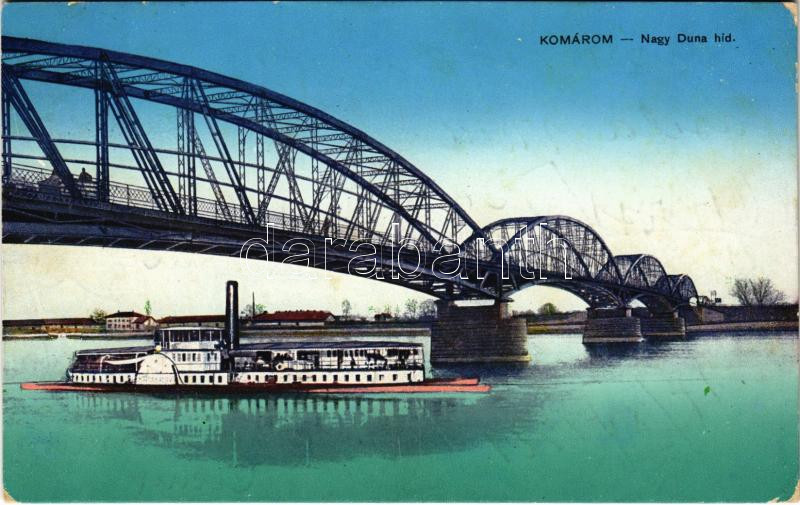 1921 Komárom, Komárno; Nagy Duna híd, gőzhajó / bridge, steamship (EK) https://www.darabanth.com/hu/437-Gyorsarveres/437.0/Kepeslapok/Felvidek~1500007/1921-Komarom-Komarno-Nagy-Duna-hid-gozhajo-bridge-steamship-EK~II2848886