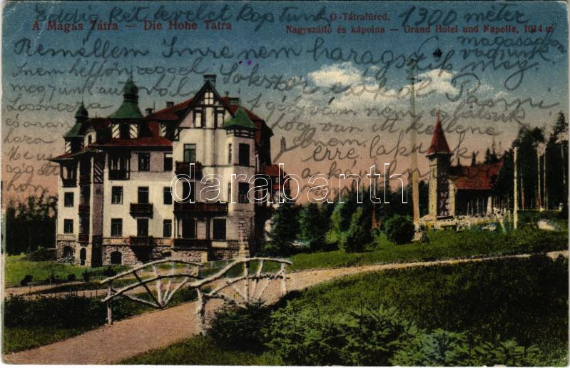 1922 Tátrafüred, Ótátrafüred, Altschmecks, Stary Smokovec (Magas Tátra, Vysoké Tatry); Nagyszálló és kápolna / Grand Hotel und Kapelle / hotel, chapel (EB)
