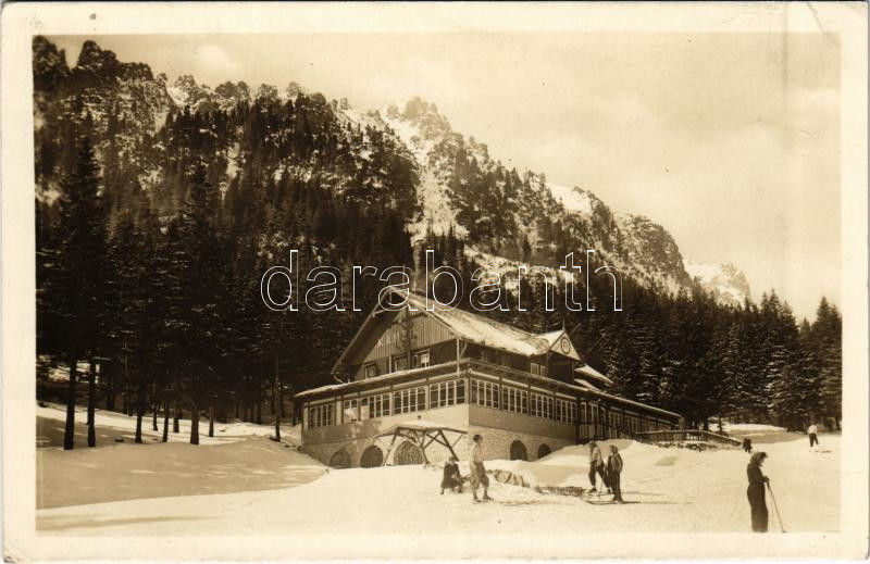 ~1955 Tátra, Magas-Tátra, Vysoké Tatry; Kamzík chata KSTL / Hotel Gemse / Zerge szálló a Tarpataki-völgyben, menedékház, téli sport, síelők / valley, chalet, tourist house, skiing, winter sport (EK)