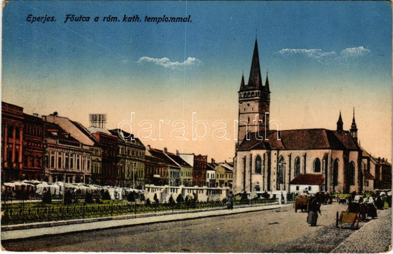 Eperjes, Presov; Fő utca, római katolikus templom / church, main stree... https://www.darabanth.com/hu/437-Gyorsarveres/437.0/Kepeslapok/Felvidek~1500007/Eperjes-Presov-Fo-utca-romai-katolikus-templom-church-main-street-kis-szakadas-tiny-tear~II2853216