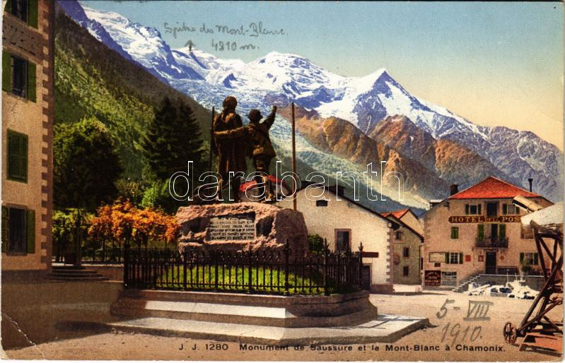 1910 Chamonix, Monument de Saussure et le Mont-Blanc, Hotel de la Post... https://www.darabanth.com/hu/437-Gyorsarveres/437.0/Kepeslapok/Franciaorszag~1500044/1910-Chamonix-Monument-de-Saussure-et-le-Mont-Blanc-Hotel-de-la-Post-EK~II2841062