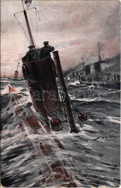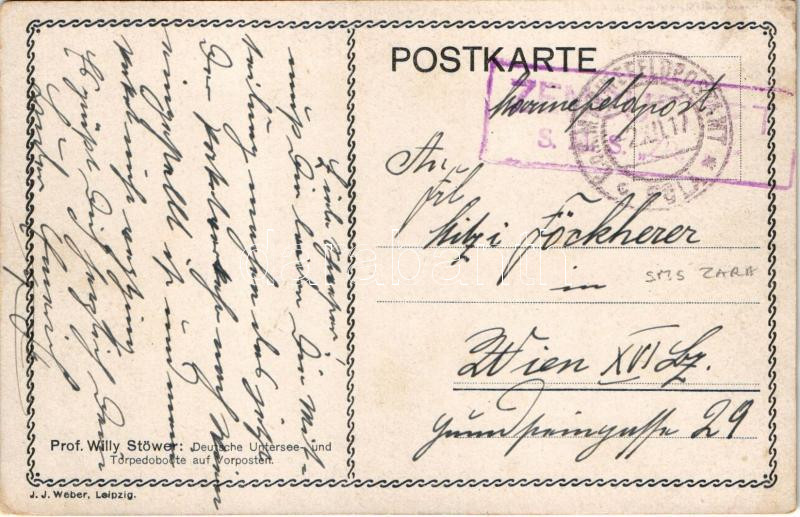 1917 Deutsche Untersee- und Torpedoboote auf Vorstopen, Kaiserliche Marine / Német tengeralattjáró és torpedónaszád / WWI German Navy submarine and torpedo boat s: Prof. Willy Stöwer + "ZENSURIERT SMS ZARA"
