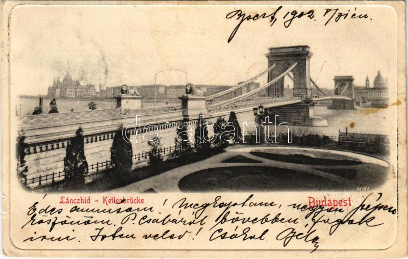 Leírás: 1902 Budapest, Lánchíd (kis szakadás / small tear)