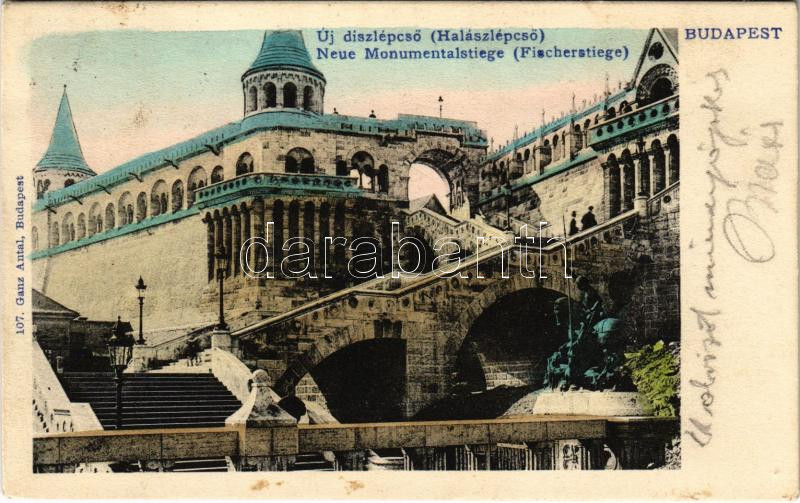 1906 Budapest I. Új díszlépcső (halászlépcső). Ganz Antal 107. (EK) https://www.darabanth.com/hu/437-Gyorsarveres/437.0/Kepeslapok/Magyarorszag~1500005/1906-Budapest-I-Uj-diszlepcso-halaszlepcso-Ganz-Antal-107-EK~II2851876