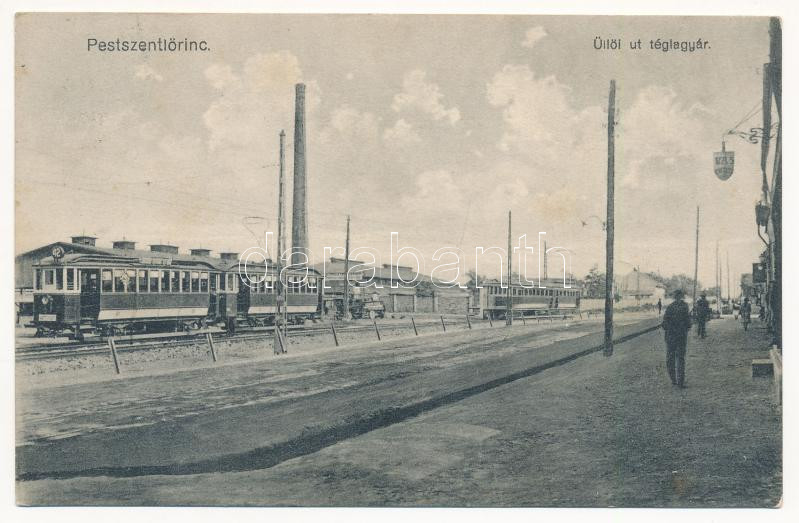 Leírás: 1928 Budapest XVIII. Pestszentlőrinc, Pusztaszentlőrinc, Szentlőrinc; Üllői út, Téglagyár, villamos (fl)