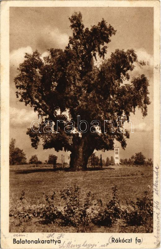 1940 Balatonakarattya, Rákóczi fa (EK) https://www.darabanth.com/hu/437-Gyorsarveres/437.0/Kepeslapok/Magyarorszag~1500005/1940-Balatonakarattya-Rakoczi-fa-EK~II2850012
