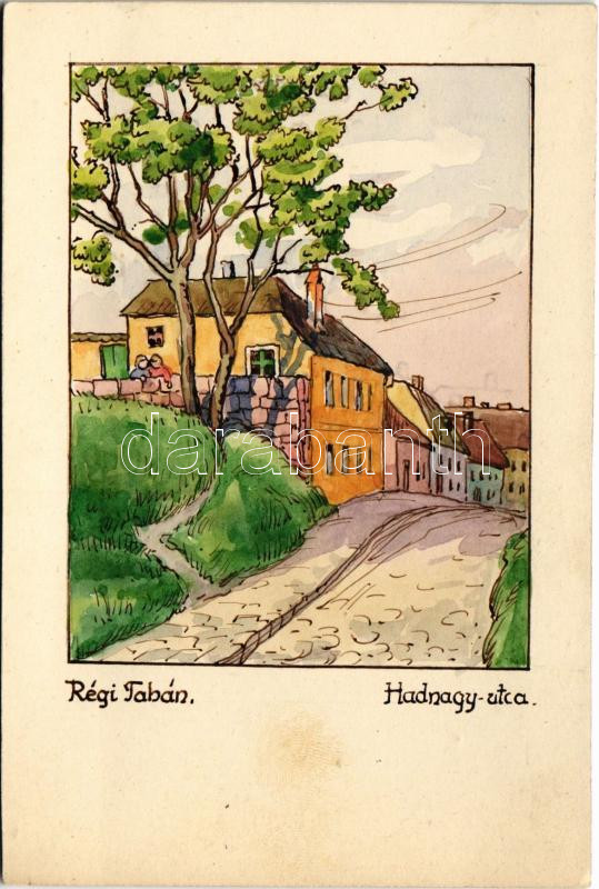 Budapest I. Régi Tabán, Hadnagy utca. Kézzel rajzolt és festett művész... https://www.darabanth.com/hu/437-Gyorsarveres/437.0/Kepeslapok/Magyarorszag~1500005/Budapest-I-Regi-Taban-Hadnagy-utca-Kezzel-rajzolt-es-festett-muveszlap-non-PC~II2851998