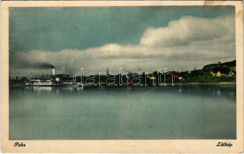 Paks, látkép, Duna és gőzhajó https://www.darabanth.com/hu/437-Gyorsarveres/437.0/Kepeslapok/Magyarorszag~1500005/Paks-latkep-Duna-es-gozhajo~II2845449
