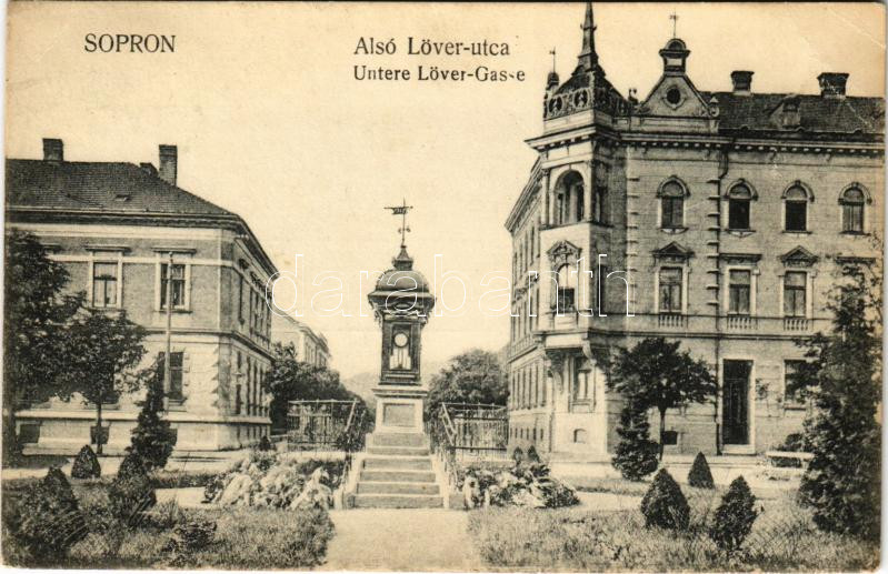 Sopron, Alsó Lövér utca, időjárásjelző. Monsberger Gottfried kiadása (... https://www.darabanth.com/hu/437-Gyorsarveres/437.0/Kepeslapok/Magyarorszag~1500005/Sopron-Also-Lover-utca-idojarasjelzo-Monsberger-Gottfried-kiadasa-fa~II2795524