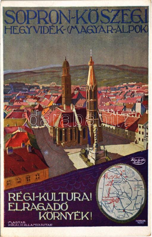 Sopron, Sopron-Kőszegi Hegyvidék (Magyar Alpok); A Magyar Királyi Államvasutak (MÁV) turisztikai reklám képeslapja, kiadja Klösz György és Fia / Hungarian State Railways tourism campaign advertisement s: Andor L. (EK)