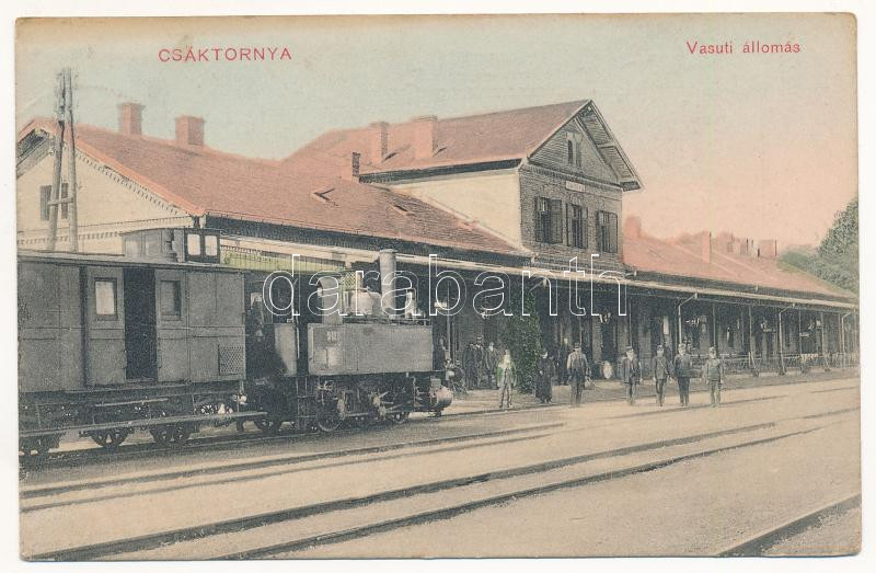 Leírás: 1918 Csáktornya, Cakovec; vasútállomás, gőzmozdony, vonat. Graner Testvérek kiadása / railway station, train, locomotive (EK)