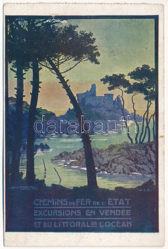 1935 Chemins de Fer de l'État Excursions en Vendée et au Littoral de L'Ocean / Francia vasúti turisztikai reklám / French State Railways touristic advertisement s: Geo Dorival (fl)