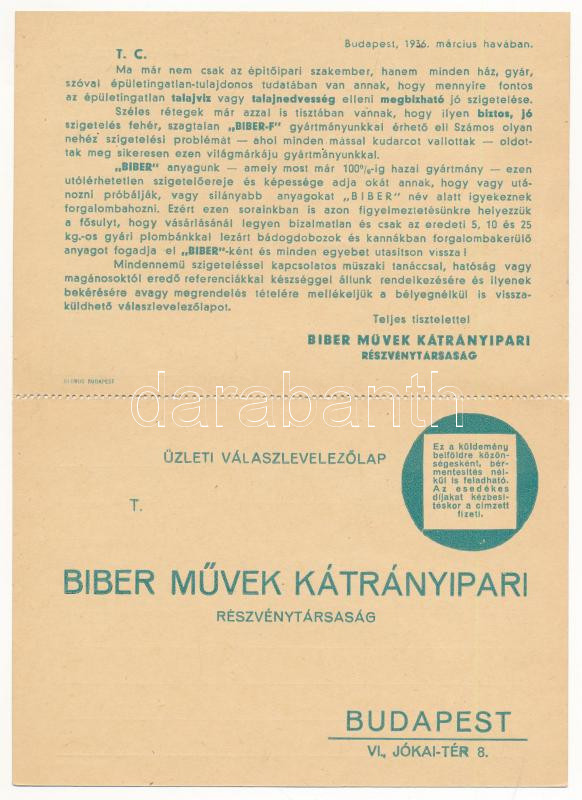 1936 Biber-F. Biber Művek Kátrányipari Rt. kinyitható reklámlapja. Bud... https://www.darabanth.com/hu/437-Gyorsarveres/437.0/Kepeslapok/Reklam~1500110/1936-Biber-F-Biber-Muvek-Katranyipari-Rt-kinyithato-reklamlapja-Budapest-Jokai-ter-8~II2845169