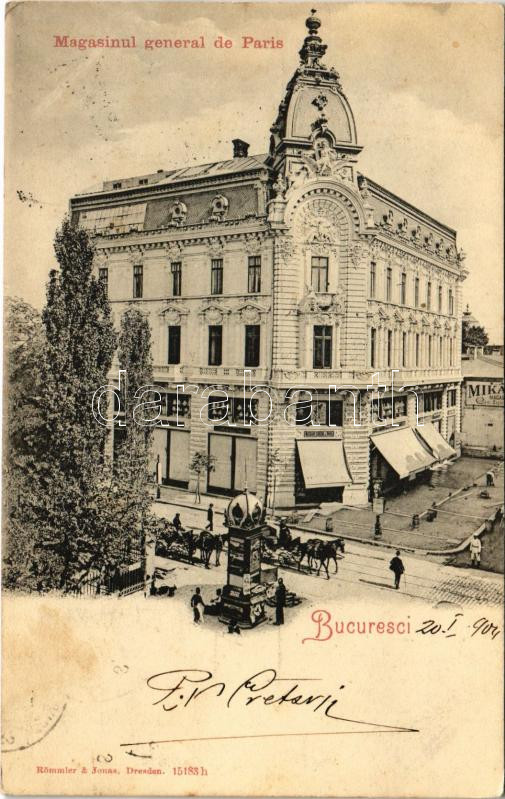 1904 Bucharest, Bukarest, Bucuresti, Bucuresci; Magasinul general de P... https://www.darabanth.com/hu/437-Gyorsarveres/437.0/Kepeslapok/Romania~1500083/1904-Bucharest-Bukarest-Bucuresti-Bucuresci-Magasinul-general-de-Paris-shopping-palace-newspa~II2843102