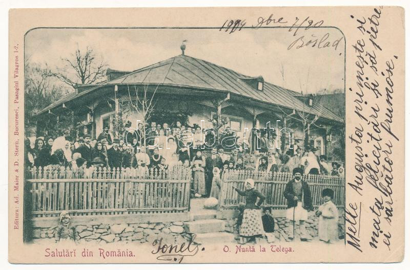 1904 Telega, O nunta, Salutari din Romania / Romanian wedding, folklor... https://www.darabanth.com/hu/437-Gyorsarveres/437.0/Kepeslapok/Romania~1500083/1904-Telega-O-nunta-Salutari-din-Romania-Romanian-wedding-folklore-EK~II2847770