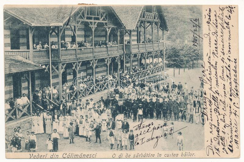 1905 Calimanesti, Baile Calimanesti; O di de sarbatore in curtea bailo... https://www.darabanth.com/hu/437-Gyorsarveres/437.0/Kepeslapok/Romania~1500083/1905-Calimanesti-Baile-Calimanesti-O-di-de-sarbatore-in-curtea-bailor-Romanian-folklore-spa-EK~II2847790