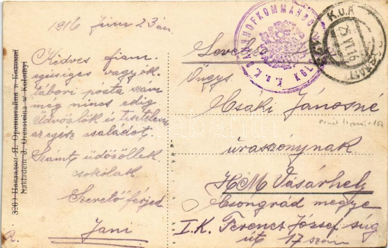 Leírás: 1916 Kolomyia, Kolomyja, Kolomyya, Kolomea; Bahnhof / Dworzec kolejowy / railway station + "K.u.K. Bahnhofkommando Kolomea" (cut)