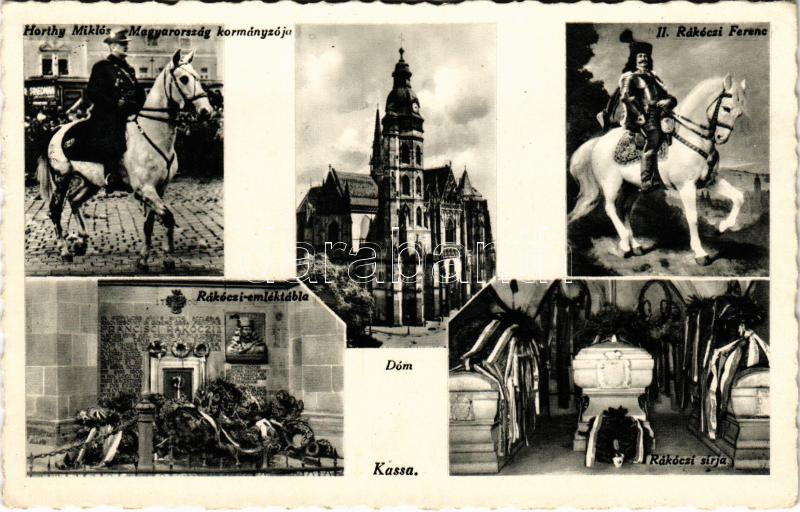 1940 Kassa, Kosice; Horthy Miklós Magyarország kormányzója, II. Rákóczi Ferenc, Rákóczi emléktábla, Dóm, Rákóczi sírja / Regent Horthy, tomb of Francis II Rákóczi, cathedral (EK)