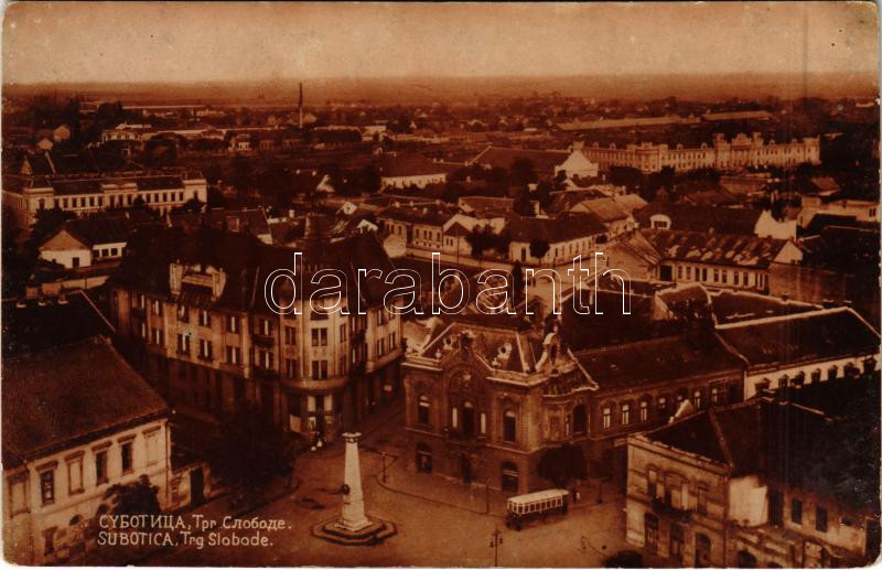 Szabadka, Subotica; Trg. Slobode / square, tram / tér, villamos (fl) https://www.darabanth.com/hu/437-Gyorsarveres/437.0/Kepeslapok/Vajdasag~1500010/Szabadka-Subotica-Trg-Slobode-square-tram-ter-villamos-fl~II2807440