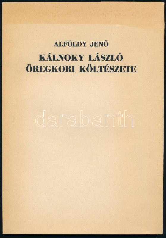Alföldy Jenő: Kálnoky László öregkori költészete. Békéscsaba, 1987., Megyei Könyvtár, 48 p. Kiadói papírkötés.